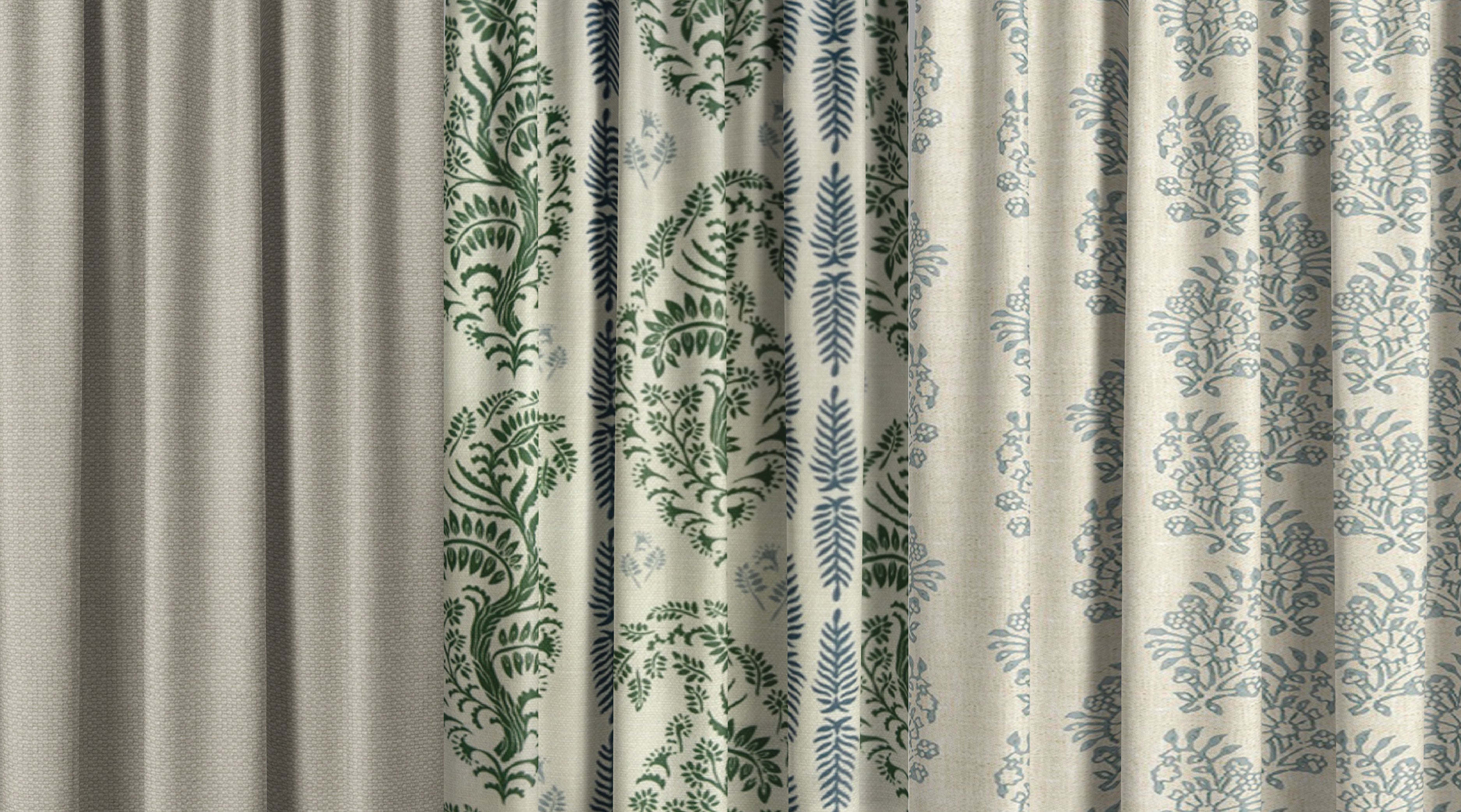 To get a price and order your bespoke curtains or roman blinds first choose your fabric and then fill in your size and technical information on the fabric page.